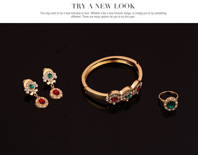 Product information: Material: Alloy Processing technology: diamond Style: Women's Set combination: earrings + item decorations + hand decorations Pattern: Love/Water Drop/Bell Color: 18K gold/61154126 Packing list: