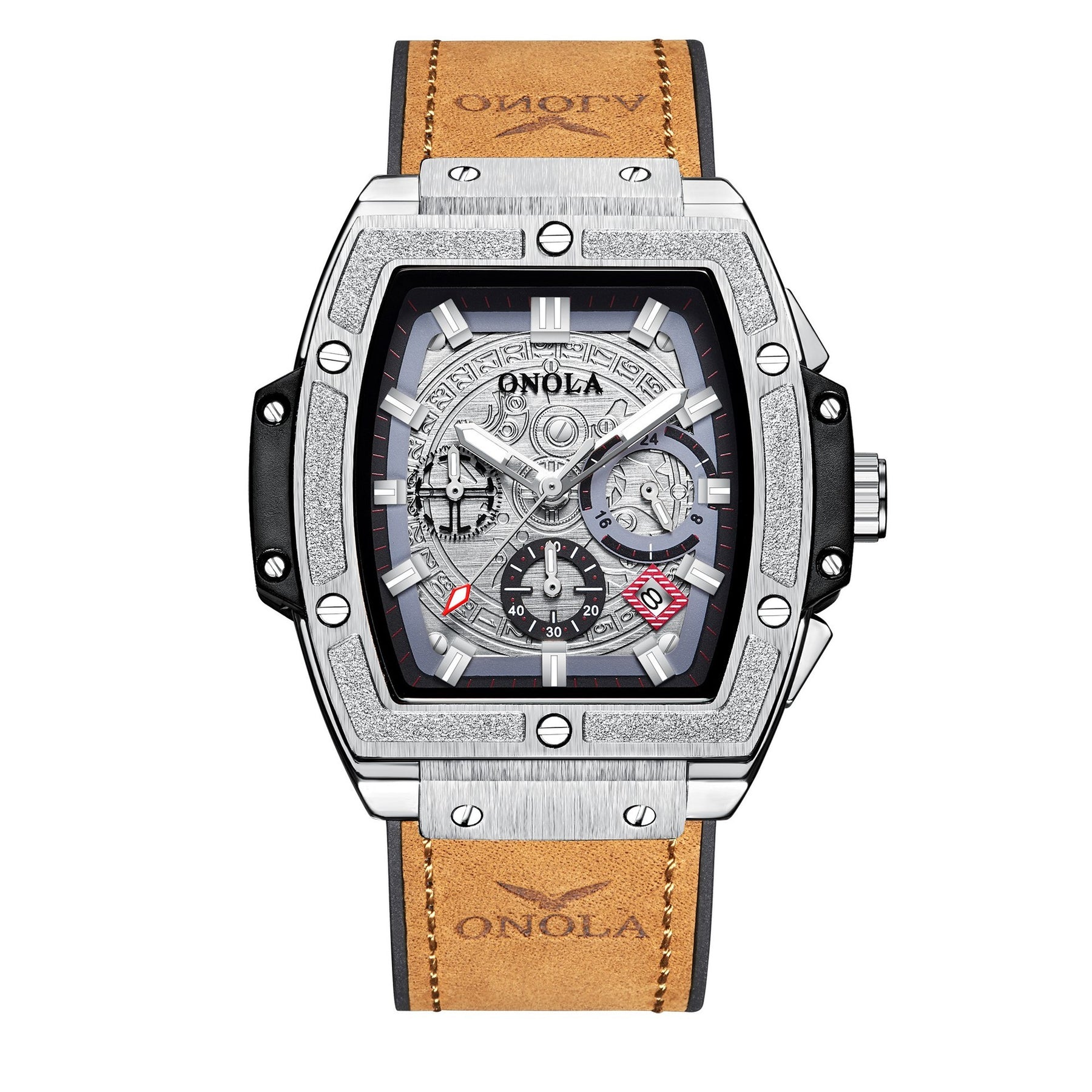 Multifunctional Men's Quartz Watch Genuine Leather Waterproof
